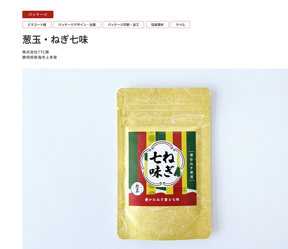 今回は、株式会社TTC様の葱玉・ねぎ七味 ラベル の実績を紹介しています。