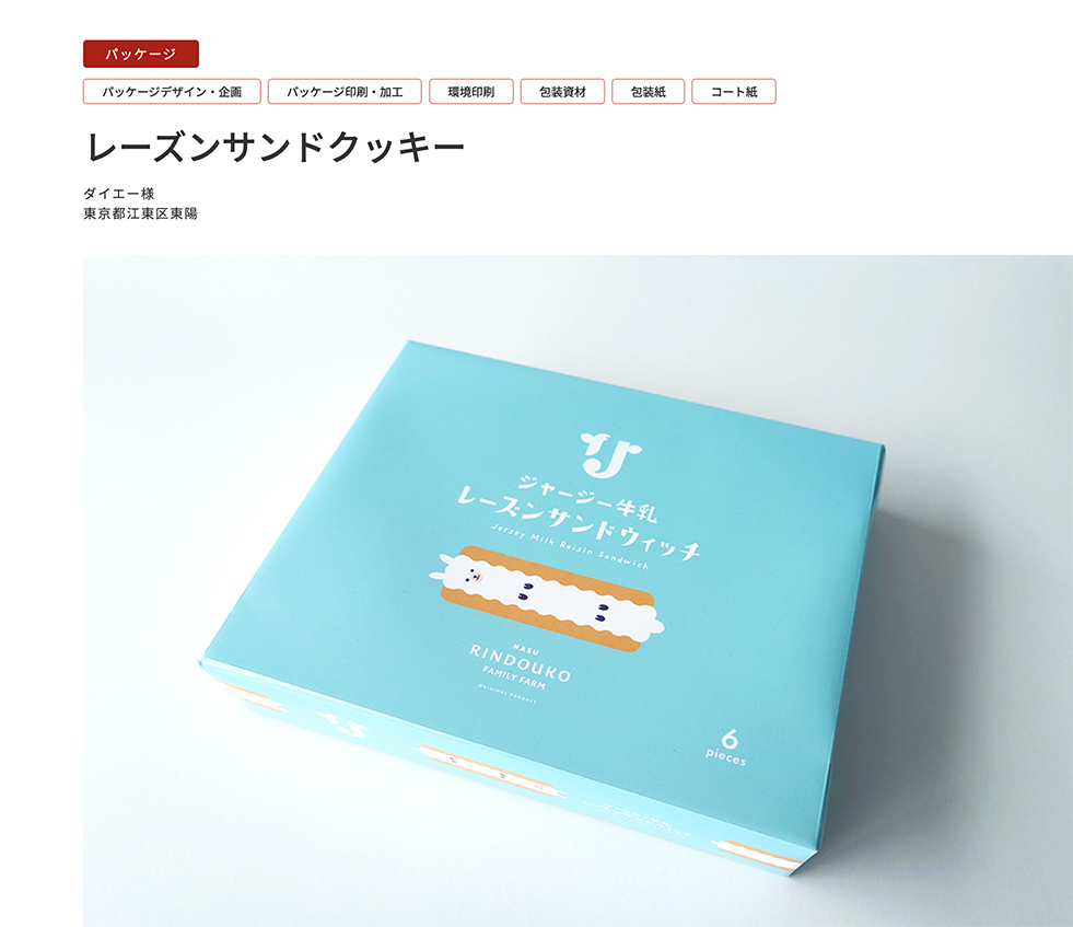 今回は、ダイエー様のレーズンサンドクッキー 包装紙 の実績を紹介しています。